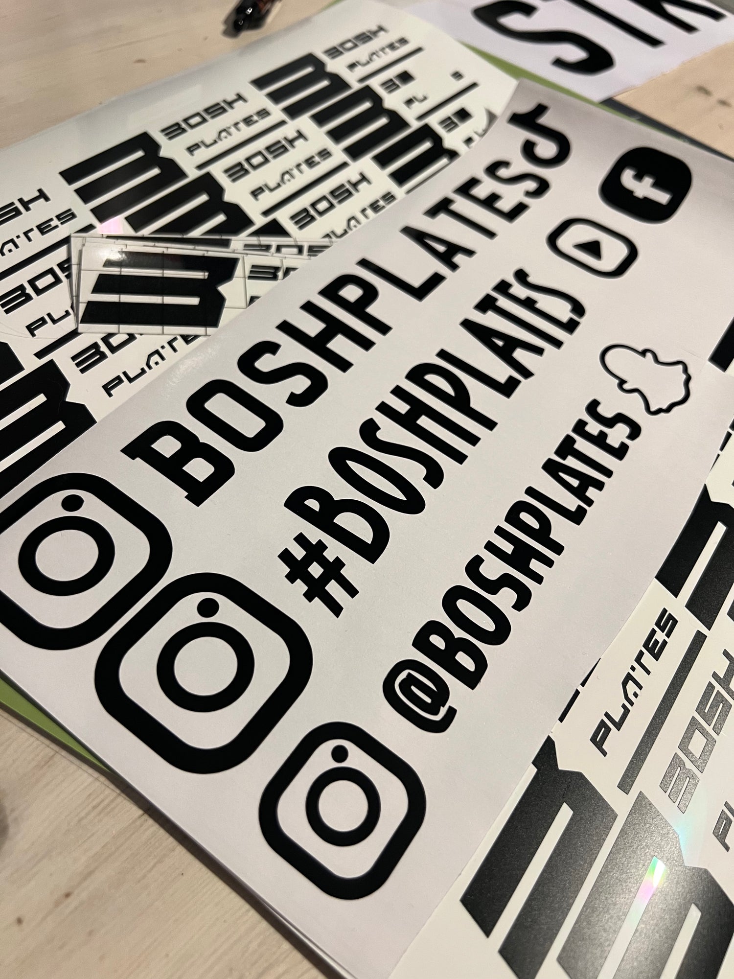 We now offer Bosh Plates Vinyl Stickers and customisable Social Tag vinyl stickers! Perfect for your car windows!